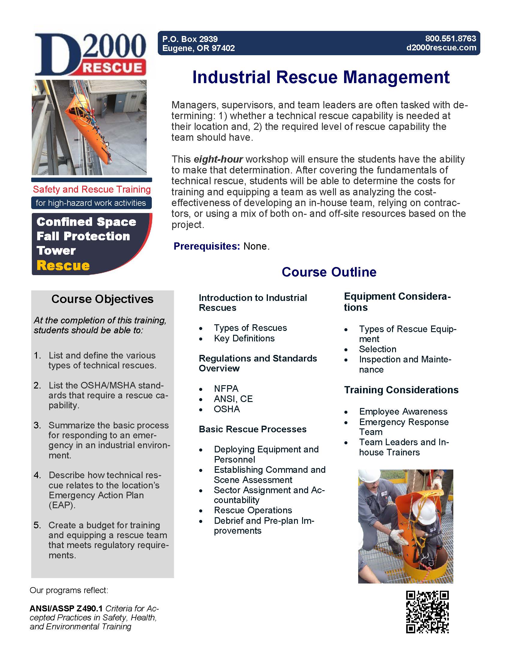 This eight-hour workshop will ensure the students have the ability to make that determination. After covering the fundamentals of technical rescue, students will be able to determine the costs for training and equipping a team as well as analyzing the cost-effectiveness of developing an in-house team, relying on contractors, or using a mix of both on- and off-site resources based on the project.